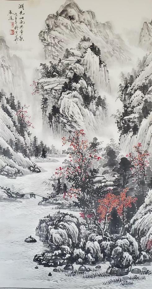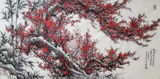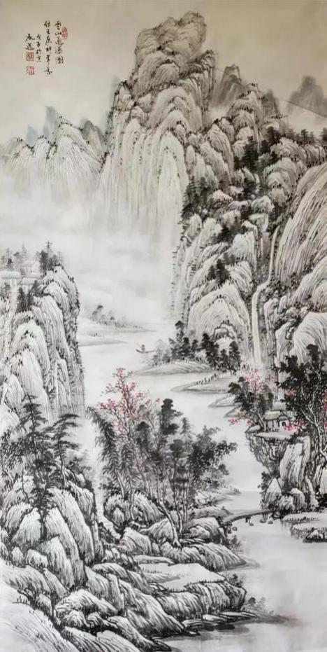 在杨承进先生的艺术世界里,有两种声音在回响:一种是山川的宏阔交响,一种是梅花的清越独白。前者以其博大包容万物,后者以其孤傲定义风骨。而当这一山一梅,一宏大一精微,共同呈现在他的笔下时,便构成了一种完整的生命图景——那是宇宙的呼吸,也是士人的精神。