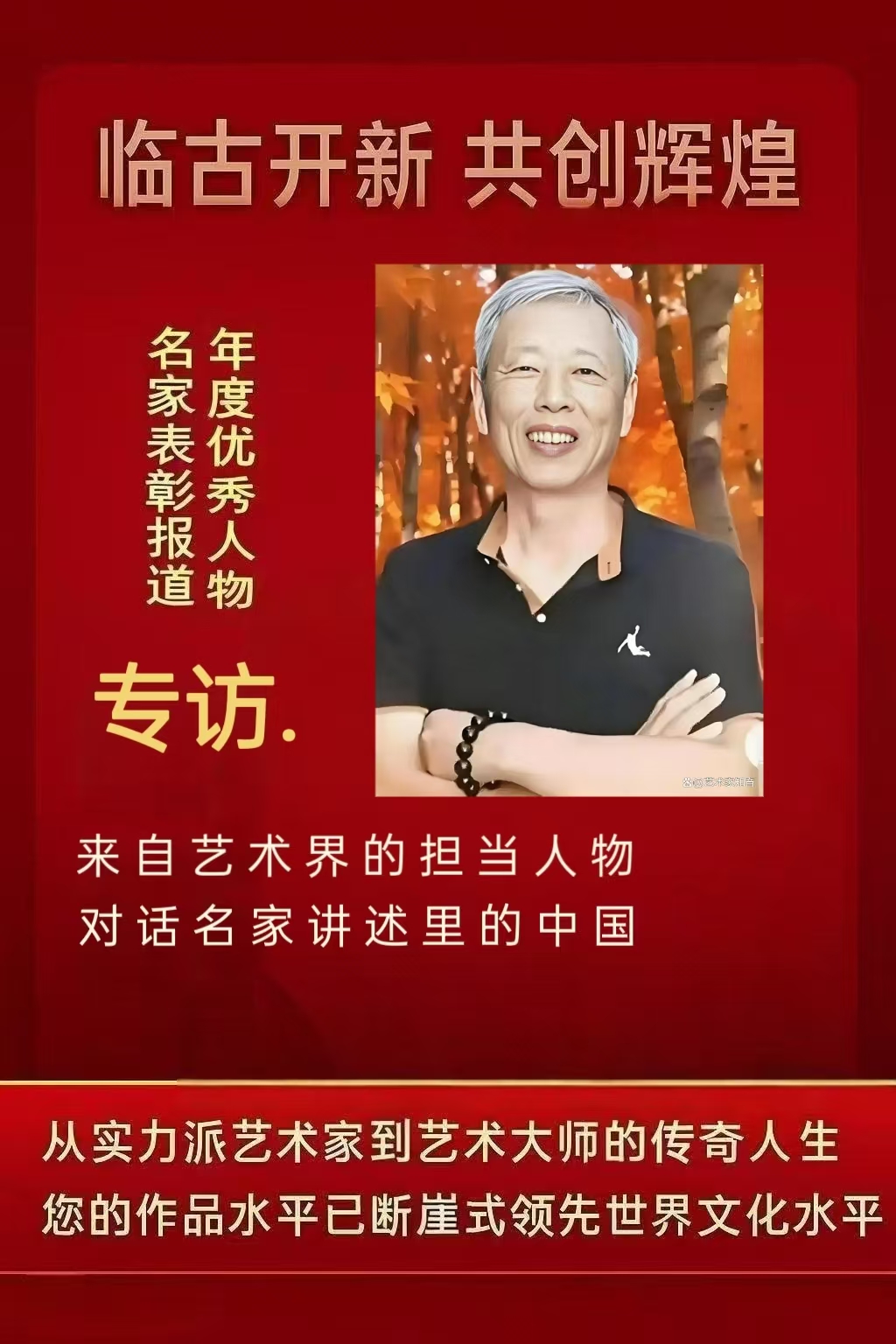 其艺术成就得到社会的广泛认可与赞誉。先后被授"世界文化优秀代表艺术家"、″世界文化艺术大师"、″最具传承宝藏艺术家"、荣获“2025年度书画领域品牌人物"称号、获联合国教科文组织颁发的“世界艺术终身成就奖"、並被授予"国际金牌艺术家"荣誉称号、"中国文化艺术传承者"、“中国诗词文化传承者"、“新时代诗词文化践行者"、“中华民族优秀文化传承者"、“当代诗书画传承人物"、"最具影响力国际书画(陶瓷)艺术大师"、向胡润研究院重点推荐艺术名家、“中国国礼艺术大师"等众多荣誉称号。作品入编《新中国书画发展史》、《国宝档案》、《近当代中国美术史》、《世界美术教育发展史》、《世界艺术年鉴1922一2022》,《文津书谱》,《国之瑰宝艺术大典》,《中国书画通史(古籍典藏版)》,《艺海辞源》,《中国字画收藏指南》等大型文献。获《国际艺术家功勋荣誉称号。被新加坡授予"新中文化交流特使"殊荣。中马文化艺术大使。2024年荣获首届国粹文化金马奖。荣获二零二五年最高中国艺术功勋成就奖。获中国书画白玉兰奖金奖。获国际高峰艺术大家终身成就领袖奖。获梵高国际艺术大赛特等奖。获2025年达芬奇国际艺术奖金奖。