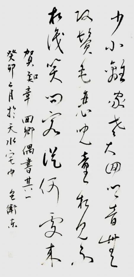 而书法艺术更是包卫东绽放光彩的璀璨舞台。作为国家一级书法师,他五体皆能,主攻篆书、草书,以独特的艺术视角和精湛的技艺,在书法领域独树一帜。篆书古朴典雅,线条凝练,尽显历史的厚重与文化的传承;草书则狂放不羁,笔走龙蛇,释放出自由奔放的艺术激情。他从太极拳的刚柔并济、二胡音乐的婉转悠扬、伏羲八卦的深邃哲理以及山水草木的自然神韵中汲取灵感,将多元艺术元素巧妙融合于书法创作,使作品兼具形式美与内涵美。