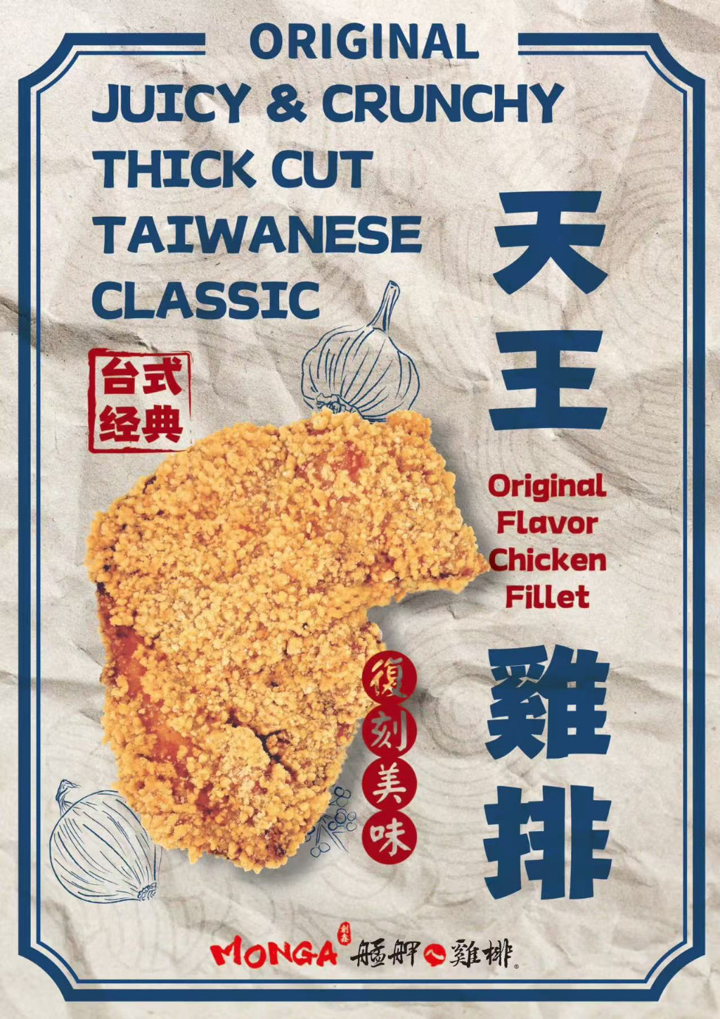2015年,「艋舺鸡排」作为以台湾历史地标「艋舺」为文化根基的街头美食品牌正式问世。这一品牌的推出,重新诠释了经典夜市小吃,迅速建立起鲜明的品牌识别与市场声量。不同于传统连锁快餐的标准化複製模式,创办人郭煜杰坚持「每块鸡排都是文化使者」的理念,严选鲜嫩鸡肉,结合自研九层塔香料,保留古早味的风味。透过真空锁鲜与冷链技术,成功实现品质稳定的跨国供应,将台湾的经典小吃推向全球。