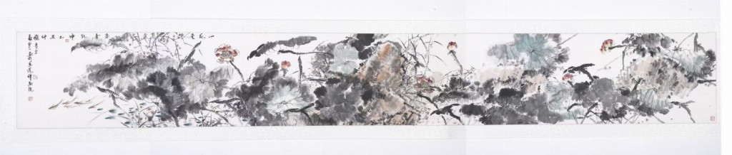 澳门回归十周年应邀创作“荷风香远、政通人和”1000cmX150cm