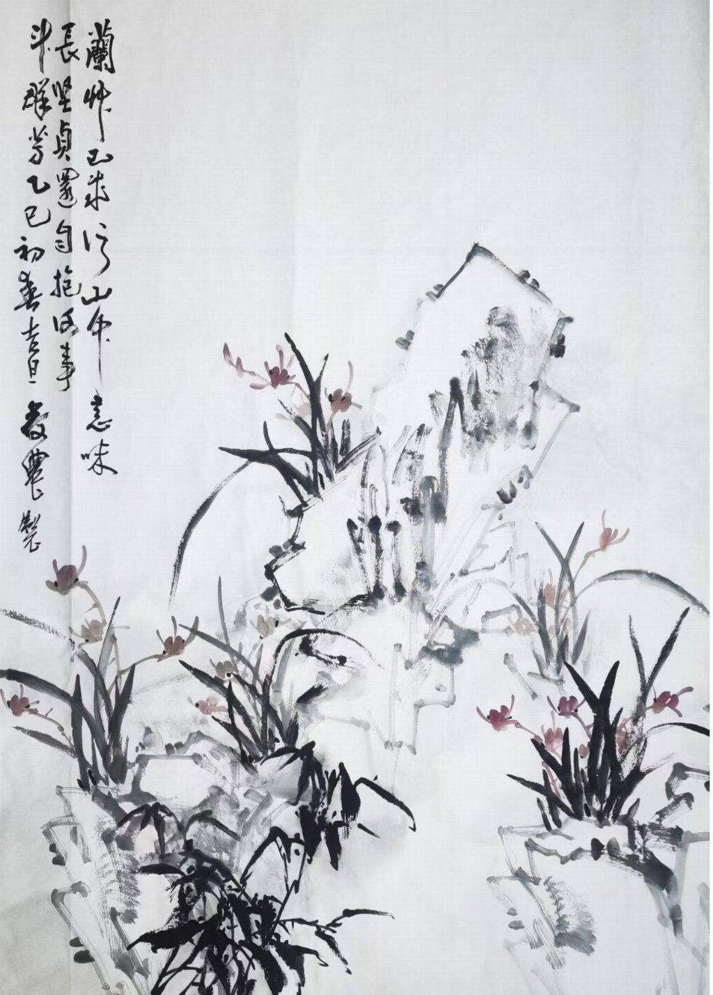除了山水,何农先生的花鸟与书法同样格调高雅。其笔下梅兰竹菊,清雅脱俗,逸笔草草而神韵俱全,是典型的人格化写照。他的书法,与其绘画一脉相承,笔致轻松自然,结体疏朗有致,洋溢着浓厚的文人气息。