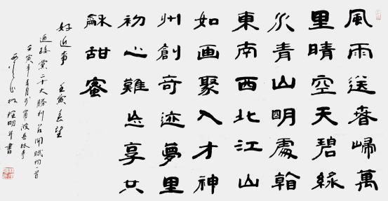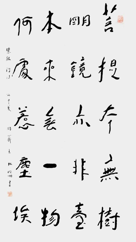 作为一名备受尊敬的书法名家,林理明先生的书法造诣之高和学识修养之深可谓都是有目共睹,并且而这两点,也恰恰就是他本人能够晓誉当下书坛的两个重要原因所在!在书法创作上,林理明先生更是能始终坚持于一种取法正品的书写格局,即是以古为宗却不受其桎梏,深谙碑帖却不受其拘泥,久久剥换,遗貌取神,最终蒙养文人风范,独树自我翰墨气象!如此一来,其所书作品自然也就是能兼具古今而不落俗,是谓自运在服古,临古须有我,意在神会也!