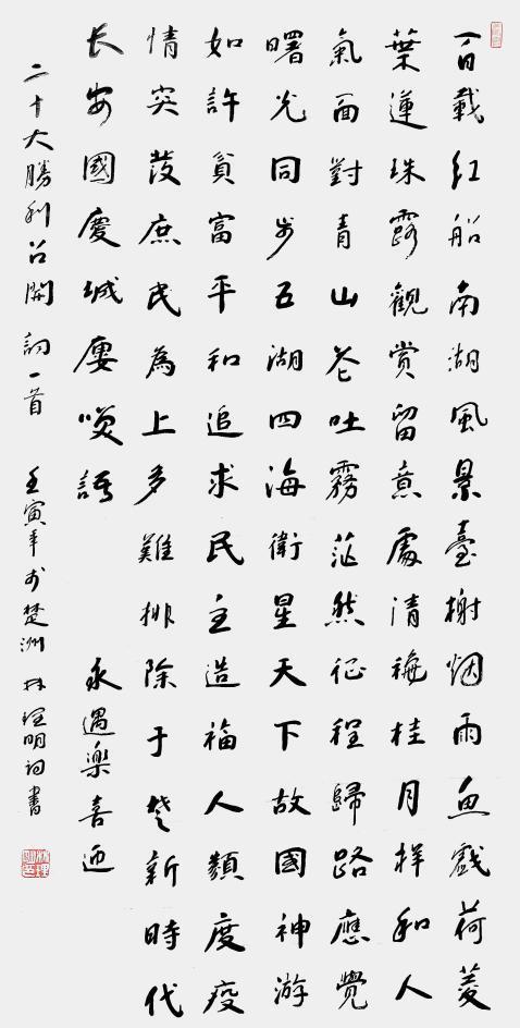 林理明,艺名在行,著名书法家,诗人,1940年生,浙江玉环人,家居杭州。书法作品被钓鱼台国宾馆、国内外政要名人及知名艺术馆收藏。并入编(三希堂石渠宝笈集萃》、《东方艺术大师》、《世界艺术巨匠》、《辉煌中国功勋人物》、《大国之匠》、《中国艺术百年》、《国魂国艺》、《盛世中华时代楷模艺术家》、《百年辉煌宗师典藏》、《中华诗词史鉴》、《中华绝妙好词》等。同时被授予“华人风采人物”、“人民书画艺术家”、“和谐诗人”、“国礼艺术家”等荣誉称号。