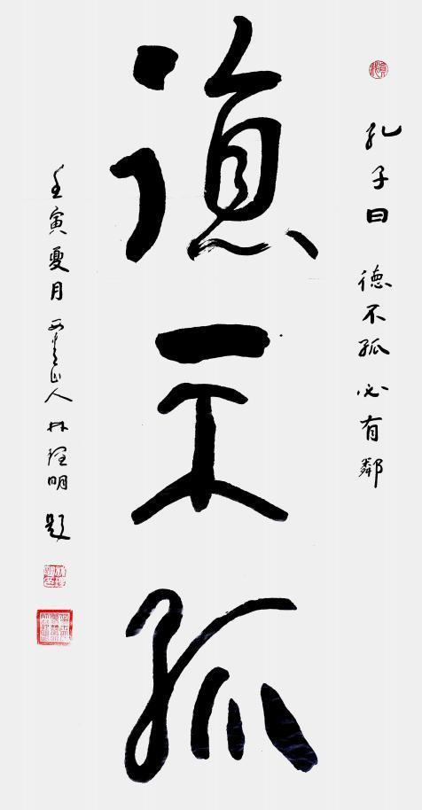 师古不泥,碑帖交融。但凡是翰墨大成者,其人也必然都是有着德艺双馨的品修高度!正入古人论书云,一须人品高,二须师法古,是书之法,学者习之,故当熟其手,必先修诸德以熟之以身,德而熟之以身,书之于手,如是而为书焉!而今日的林理明先生则显然就是有深谙于此道,取法于古以求字内功,学养积淀以尚字外功,书不媚俗,作不媚匠,实谓承古继今之正道!造诣修成,功至卓绝,晓誉艺界,彪炳书坛!